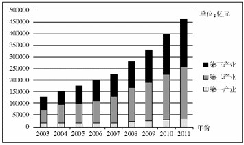 图1 2003年至2011年三次产业生产总值 [公务员考试真题]