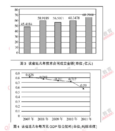 2011年,某省全社会研发经费达612.93亿元,R&D9(研发)经费占GDP的比重达1.9%。比2010年提高0.12个百分点。2011年,该省专利申请量和授权量分别达16.5万件和13万件。同比增长35%和11.7%。2011年,该省技术市场合同成交额68.2928亿元。2011年,该省每万元GDP能耗0.590吨标准煤。