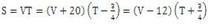 ,联立二元一次方程组,解得,T=3,V=60,S=3×60=180.