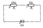 33.如图所示,电路的三根导线中,有一根是断的,电源、电阻器R1,R2:及另两根导线都是好的,为了查出断导线,某同学想先将万用表的红表笔接在电源的正极a,再将黑表笔分别连接在电阻器R1的b端和R2的c端,并观察万用表指针的示数。问万用表应调在哪档, 符合操作规程?