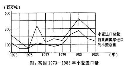 96.从1 973年到1977年中,该国大约共从亚洲国家进口多少吨小麦?