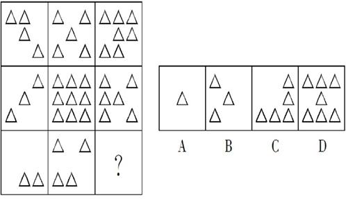 76.从所给的四个选项中,选择最合适的一个填入问号处,使之呈现一定的规律性。