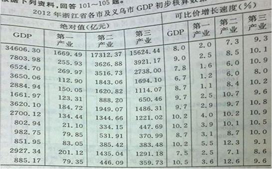 101.全省第一产业增加值约占GDP的: