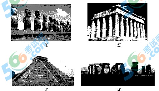 【解析】①是智利复活节岛上的石像;②是希腊的巴特农神庙;③是墨西哥的玛雅金字塔遗址;④是英国的巨石阵,又称太阳神庙。故本题答案选D。