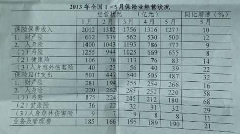 115.关于2013年1~5月保险业经营状况,能够从上述资料中推出的是: