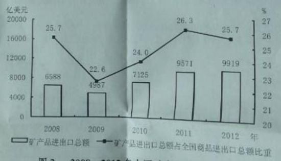 110.关于2009-2012年全国矿产品贸易和能源生产、消费,能够从上述资料中推出的是: