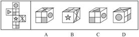 75.左边给定的是纸盒的外表面,下列哪一项能由它折叠而成: