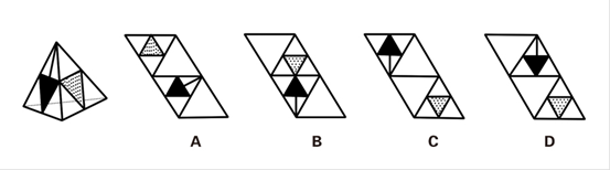 92.右边四个图形中,只有一个是左侧图形的展开的展开图,请把它找出来。