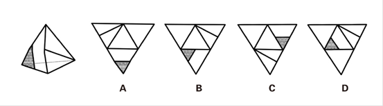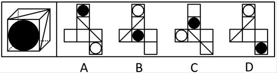 94.右边四个图形中,只有一个是左侧图形的展开的展开图,请把它找出来。