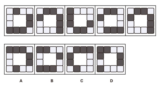 88.在题干中给出一套图形,其中有五个图,这五个图呈现一定的规律性。在给出的另一套图形中,有四个图,从中选出唯一的一项作为保持左边五个图规律性的第六个图。