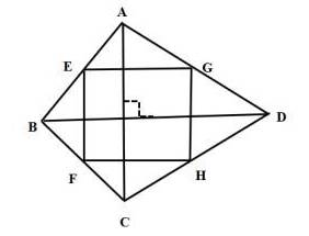 64.【解析】根据题意,如下图。E、F、G、H是四边形ABCD的中点。且EFHG为矩形,根据EF平行AC,FH平行于BD,且EF和GH垂直,则AC与BD垂直。因此,四边形ABCD为对角线互相垂直的四边形。答案选择D。