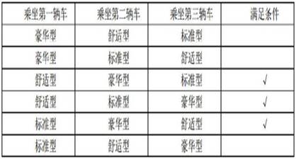 根据上述表格我们能够看出满足条件的有3种情况,总情况数有6种,则此人乘坐豪华车的概率为1/2。因此选择A选项。