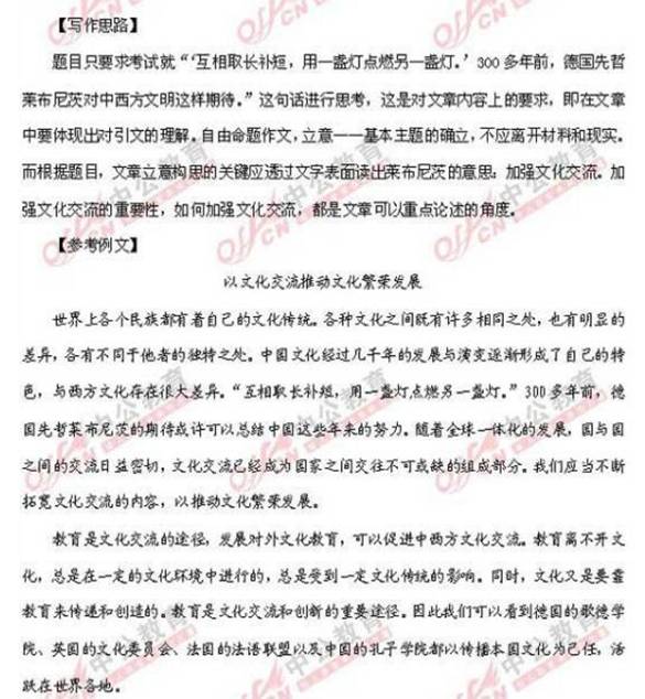 3.给定资料3中提到,“互相补长取短,用一盏灯点燃另一盏灯,300多年前,德国先哲莱布尼茨对中西方文明这样期待。请根据你对这句话的思考,参考给定资料,自拟题目,写一篇文章。(40分)
