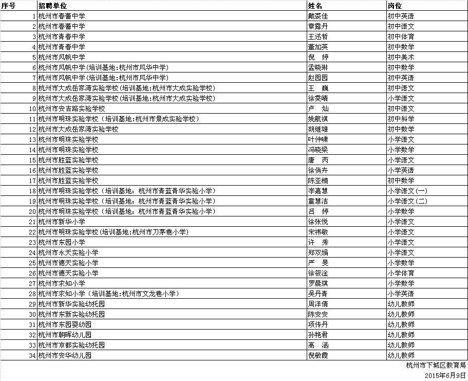 5月杭州市下城区教育局所属事业单位招聘教师体检名单
