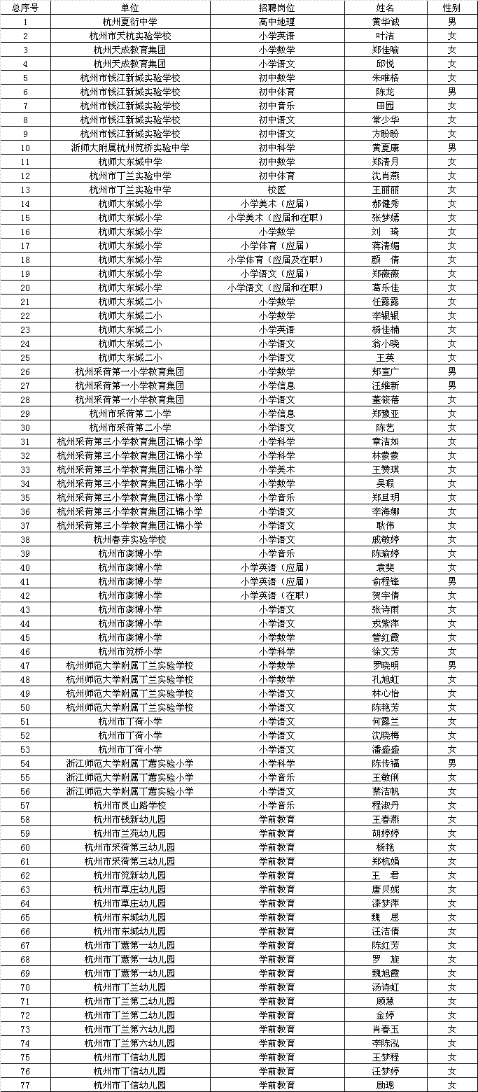 2015年06月浙江杭州江干区教育局教职工招聘体检名单