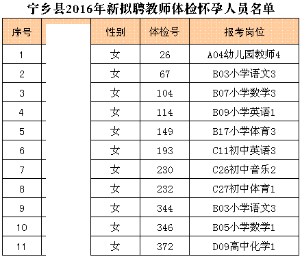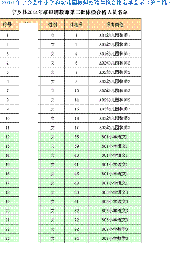 原标题:宁乡县2016年中小学和幼儿园教师招聘体检合格进入考察环节名单公示(第二批)