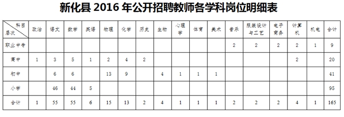 原标题:新化县教育系统2016年面向社会公开招聘教师实施方案