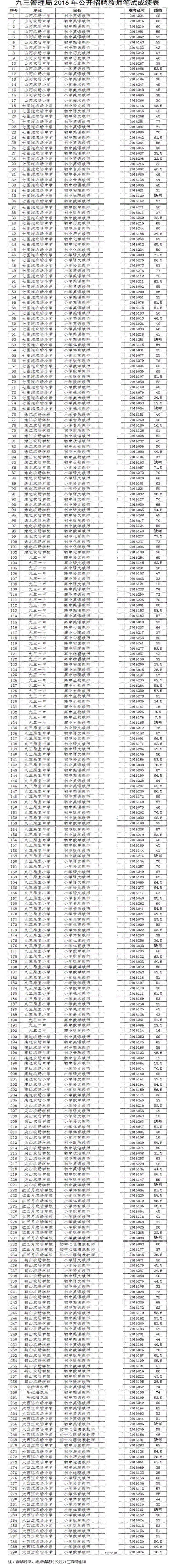 2016年11月黑龙江九三管理局招聘教师笔试成绩公告
