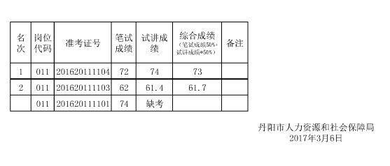 2017年03月江苏丹阳市教育系统学校招聘教师综合成绩公示