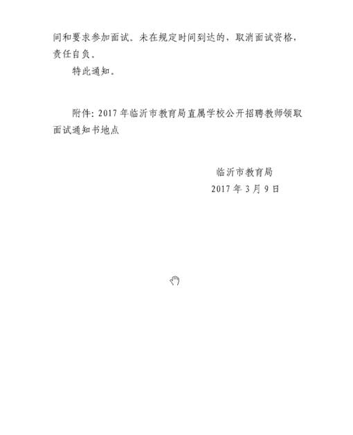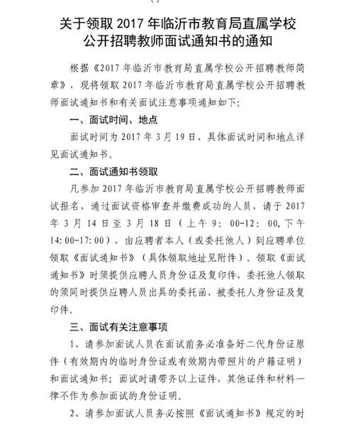 2017年03月山东临沂市教育局直属学校领取招聘教师面试通知书通知