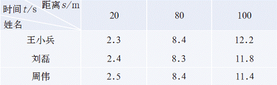 (1)学校运动会男子100m赛,同学们测量了前三名运动员到达距起点20m、80m和100m处的时间,数据见下表。
