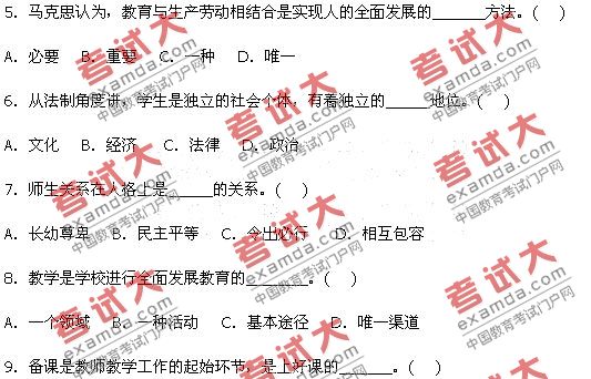 来源:91考试网-教师资格二、多项选择题(本大题共6小题,每小题2分,共12分)在每小题列出的五个备选项中有二至五个是符合题目要求的,请将其代码填在题后的括号内。错选、多选、少选或未选均不得分。