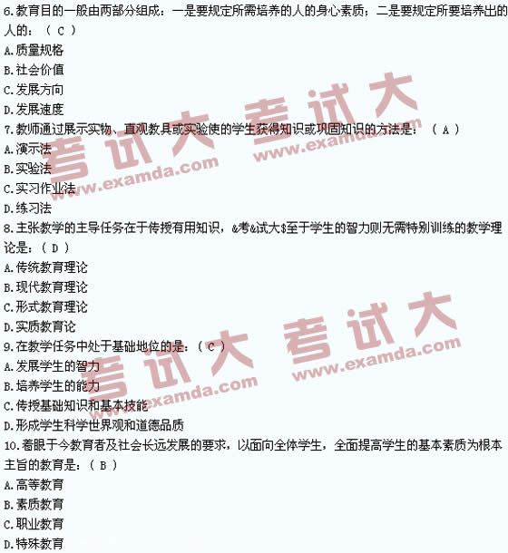 17.教育目的:指社会对教育所要造就的社会个体的质量规格的总的设想或规定。