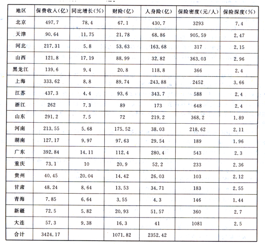 - 3在以上各省市中,人身险占该省市保费收,A 50%以上的有( )。