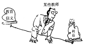 本题解释: 正确答案是D。专家解析:《中小学教师职业道德规范》中的第七个规范是“廉洁从教“它要求教师应具备高尚情操,发扬奉献精神,自觉抵制社会不良风气影响,不利用职权谋求私利。漫画中的教师为了利益,背信弃义,违背了廉洁从教的职业道德规范。