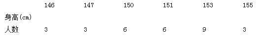 平均数为(146x3+147x3+150x6+151x6+153x9+155×3)÷30=150.9(cm)。