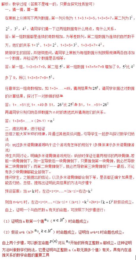 写作题 请依据以下《课标》要求和素材撰写一份侧重创新意识培养的教学过程设计。(只要求写教学过程)《义务教育数学课程标准(2011年版)》指出创新意识培养是现代数学教育的基本任务,应体现在数学教与学的过程中,学生自己发现和提出问题是创新的基础,独立思考、学会思考是创新的核心。归纳概括得到猜想和规律,并加以验来源:91考试网证,是创新的重要方法。创新意识的培养应该从义务教育阶段做起。贯穿数学教育的始终。