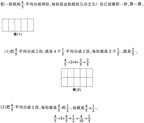 写作题 以下是义务教育课程标准实验教科书(人教版)六年级上册关于“分数除以整数”的教学内容,请阅读并依据此回答后面的问题。