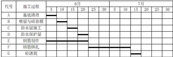 某工程基础底板施工,合同约定工期50 天,项目经理部根据业主提供的电子版图纸编制了施工进度(如图1 ) , 底板施工暂未考虑流水施工.