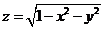 是由球心在原点半径为1的上半球面与顶点在原点、对称轴为