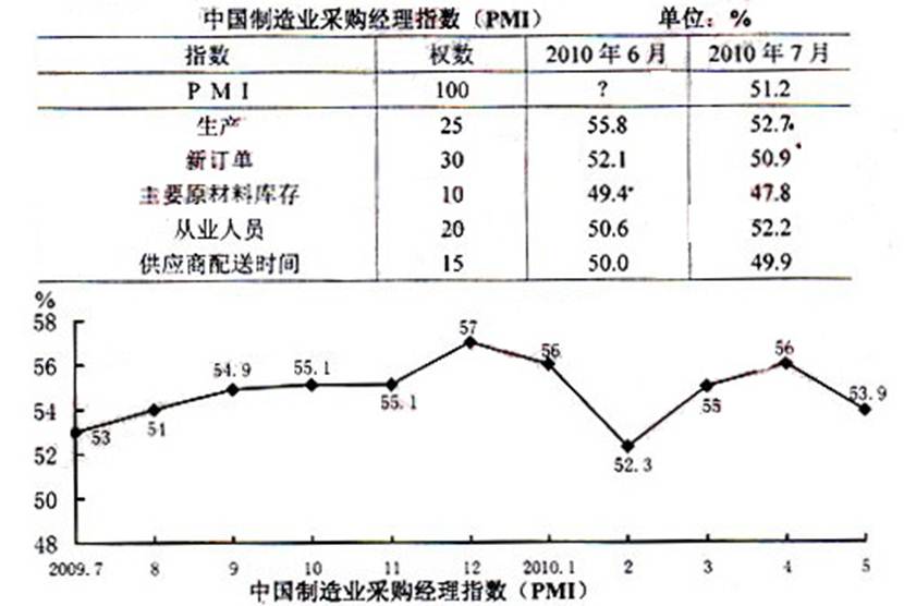 90.2009年7月至2010年5月,PMI增量最大的月份是: