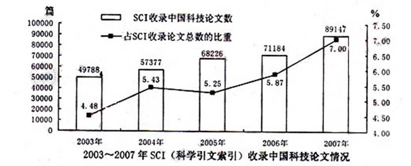 82.2003~2007年,SCI平均每年约收录多少篇中国科技论文?