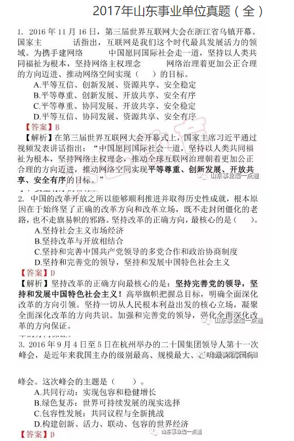 2017年山东事业单位真题