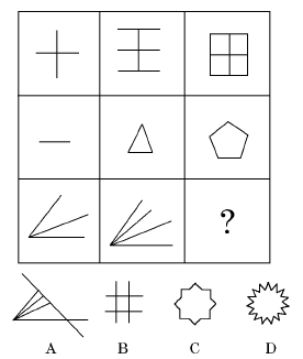 (一)请从所给的四个选项中,选择最适合的一个填在问号处,使之呈现一定的规律性。