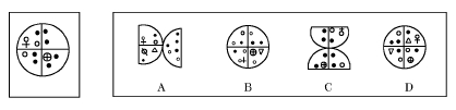 (二)左边的图形由若干个元素组成。右边的备选图形中只有一个是由组成左边图形式