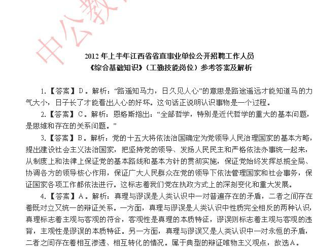 2012年上半年江西省省直事业单位招聘《综合基础知识》(工勤技能岗位)试卷