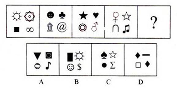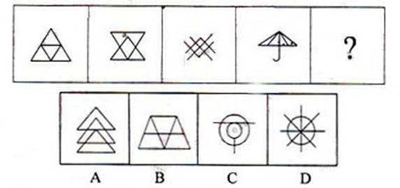 一、图形推理。请从所给的四个选项中,选择最合适的一个填入问号处,使之呈现一定的规律性。