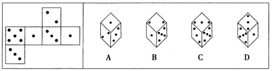 · (38). 以下哪一个正方体展开后的平面示意图和左图不一致?( )