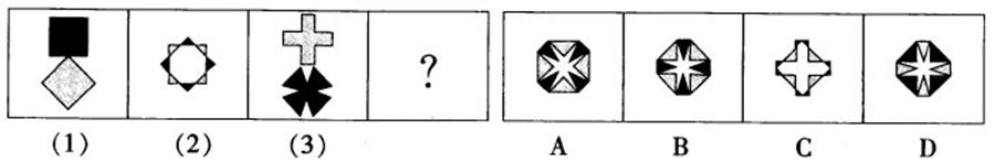 三、图形推理。请认真观察每组图形,理解其中含义,判断出它的逻辑和顺序,并在四个选项中选择你认为最合适的答案。