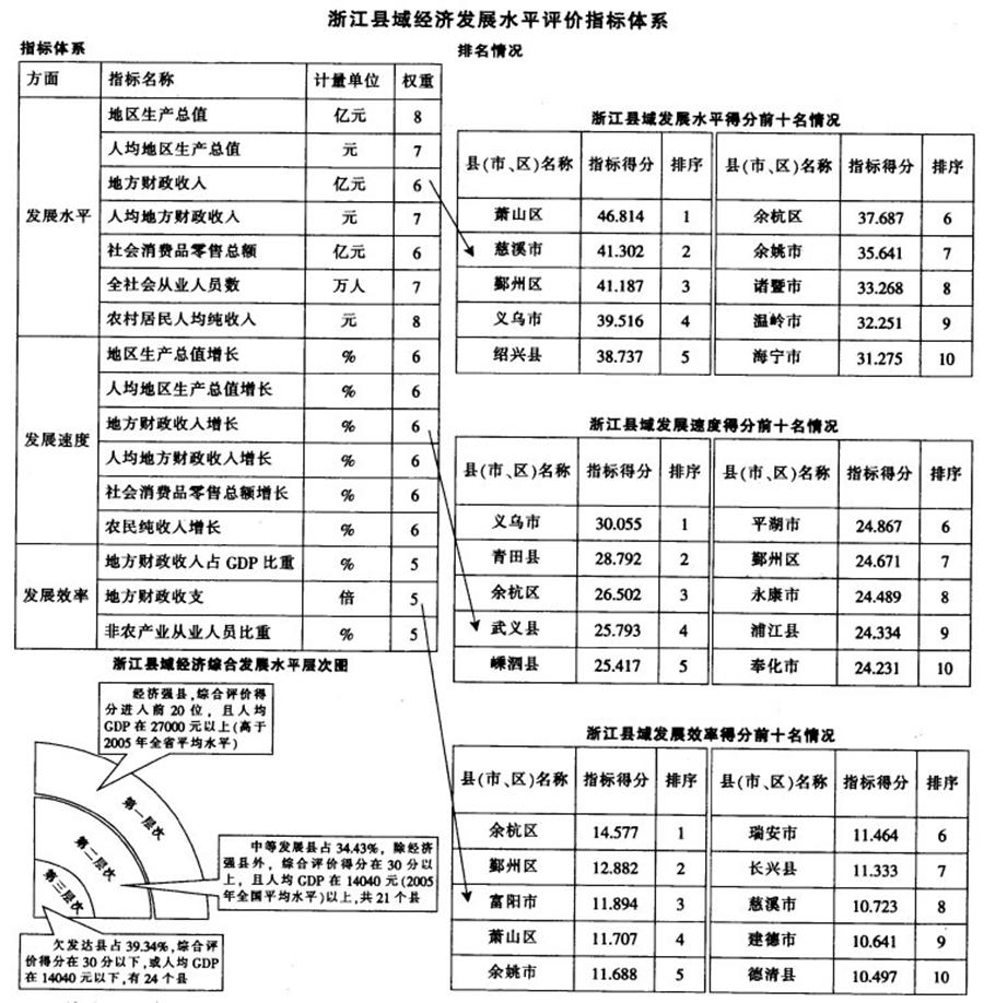 · (80). 从给定资料中可以得知,处于浙江县域经济综合发展水平第一层次的县区共有:( )