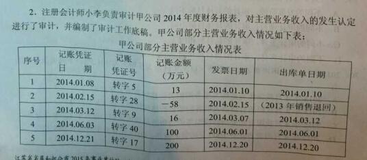 小李检查了上述业务销售合同,核对了记账凭证日期,发票日期和出库单日期后,认为上述业务销售合同约定,账务记载没有异常,对于转28号凭证的-58万元,财务经理解释说系甲公司2013年度销售,小李没有实施进一步的审计程序