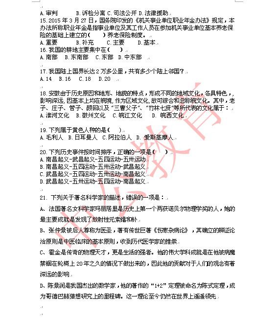 2015年安徽事业单位招聘笔试真题及答案解析(公共基础知识二)