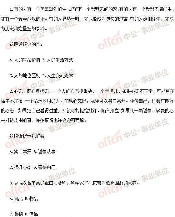 事业单位考试真题