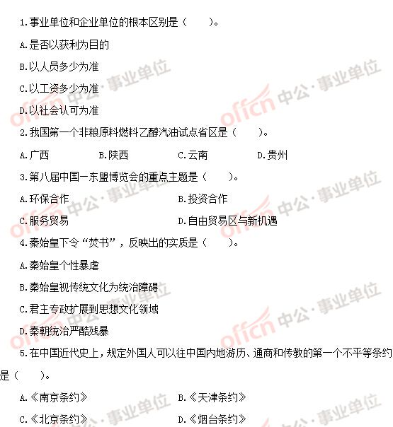 事业单位考试历年真题