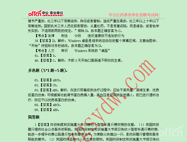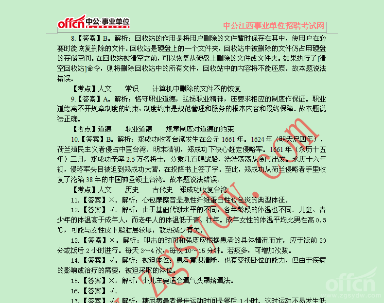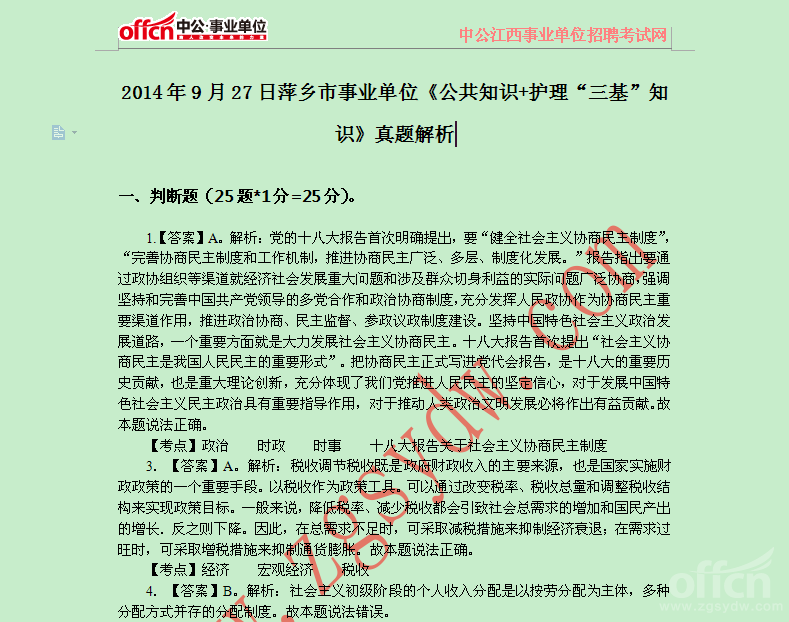 2014年9月27日萍乡市事业单位《公共知识+护理“三基”知识》真题解析