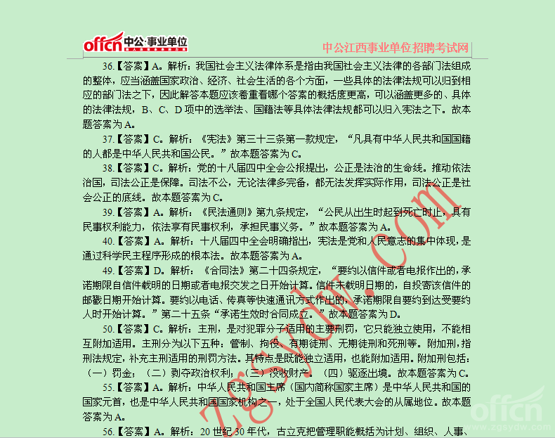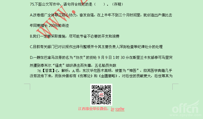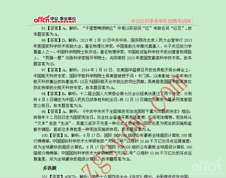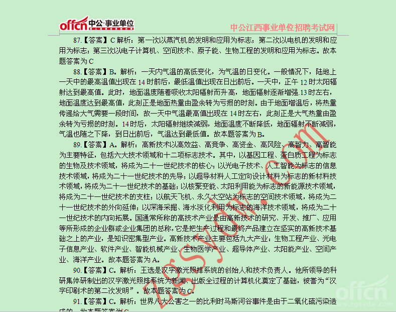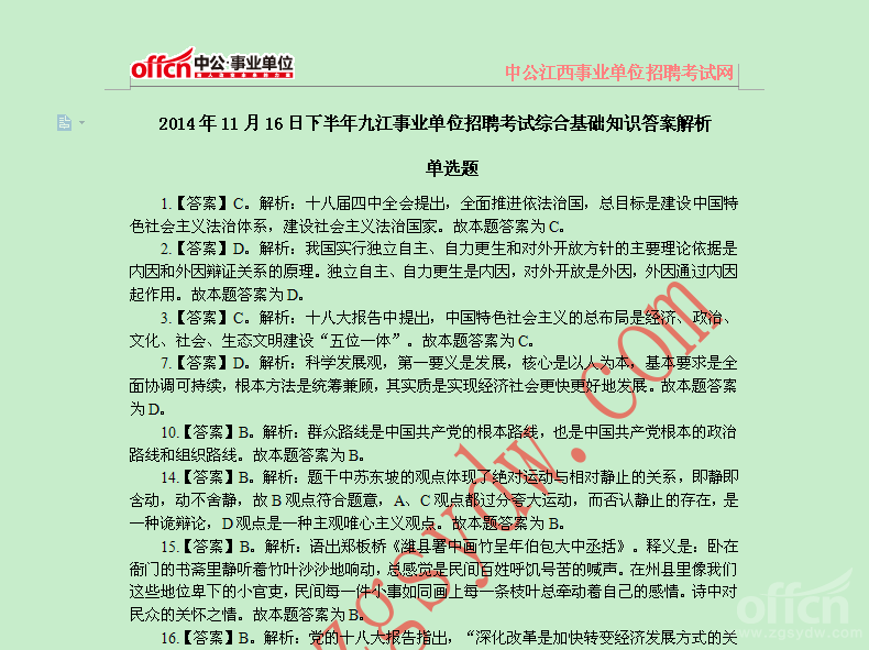 2014年11月16日下半年九江事业单位招聘综合基础知识答案解析